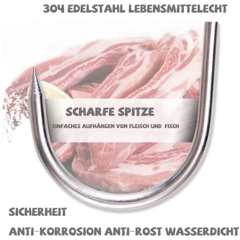ăLargement utilisĂ©ă: Ce crochet inox pour fumer peut accrocher du bĆuf,du canard rĂŽti,du poulet,du bacon,du jambon,du poisson et d’autres viandes.. Il peut ĂȘtre fumĂ©, sĂ©chĂ© et pendu,convient Ă diverses occasions telles que l’abattoir, la boucherie et la famille.IdĂ©al pour la transformation de la viande,les bouchers,les chasseurs,la suspension de la viande,le sĂ©chage et le fumage.