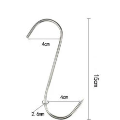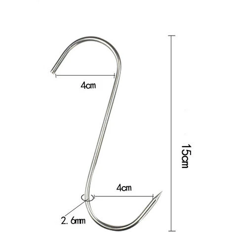 ăCrochet en S Robusteă:Ce crochet en S en acier inoxydable a une surface lisse et durable pour une utilisation pour protĂ©ger votre main des rayures.Forte capacitĂ© de charge, robuste et durable, rĂ©sistant Ă l’acide et Ă la chaleur.12 piĂšces,Charge maximaleâŻ: jusquâĂ 100 kg.Longueur totale : 15cm. ĂpaisseurâŻ: 2.6 mm.
