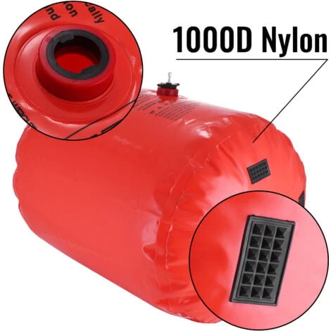 Le coussin gonflable est construit avec du nylon 1000D ultra-durable pour une durabilite accrue, avec une connexion deentree en polyamide renforce de verre et des coussinets coniques antiderapants sur la base pour eviter le glissement.
