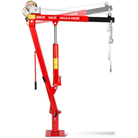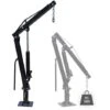 La grue peut être facilement montée sur presque toute surface solide. Monté sur le plateau de chargement de votre véhicule ou de votre remorque, il peut être utilisé partout où votre véhicule se trouve. Selon le réglage des grues, la capacité de levage est de 110 kg (prolongé) ou max. 900 kg (rétracté). Via la chaîne en acier et le crochet de chargement attaché à la grue, les charges peuvent être éffectués directement du sol et élevées jusquà une hauteur de 1900 mm (hauteur de crochet). Le treuil à main robuste, ainsi que la tour pivotante vous appaule avec une emplitude de pivotement de 360°, même en pleine charge.