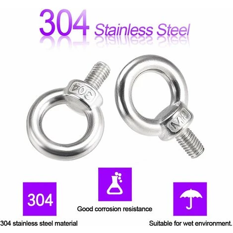 Matériau de qualité : acier inoxydable 304, haute dureté, résistance à la corrosion, peut être utilisé dans des environnements humides. La surface du boulon à œil de levage est lisse, la force est uniforme, il n’est pas facile à endommager, et il est
