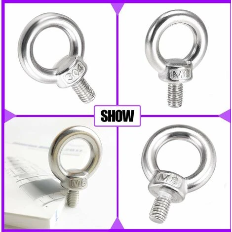 Différentes tailles: nos boulon à œil en acier inoxydable 304 sont disponibles en trois tailles différentes, M4, M6 et M8. Veuillez choisir la taille appropriée selon vos besoins.