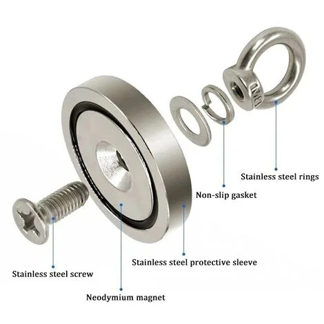 ▲ Conception unique polyvalente, trous et boulons à œil fraisés, très appropriés pour la pêche sous-marine de divers matériaux en fer et en nickel. C’est une excellente idée pour les applications de pêche magnétique, de levage, de suspension et de recyclage.