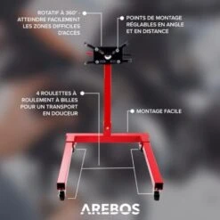 Notre support moteur AREBOS est un must pour tout bricoleur. Avec une capacité de charge allant jusqu’à 570 kg, il est l’aide parfaite pour travailler sur les moteurs ou les boîtes de vitesses.