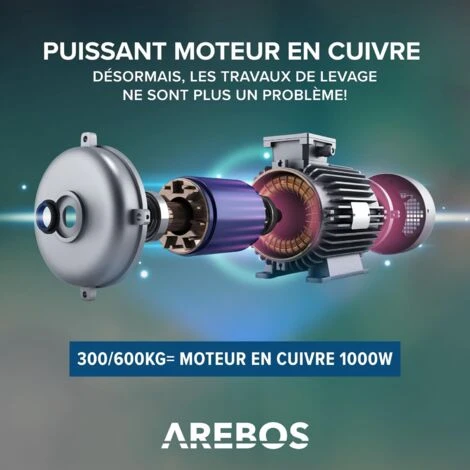[Treuils à câble d’AREBOS] Si vous avez besoin d’un treuil à câble pour un usage privé ou professionnel, AREBOS est l’endroit où chercher : choisissez entre différents treuils à câble de 500 W et 100/200 kg, 1000 W et 200/400 kg, 1000 W et 300/600 kg, 1300 W et 400/800 kg ou même 1300 W et 500/1000 kg.