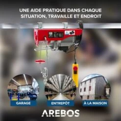 Le treuil électrique robuste d’AREBOS est un outil indispensable lorsqu’il s’agit de soulever ou de déplacer de lourdes charges dans les ateliers, les garages ou votre chantier à la maison.