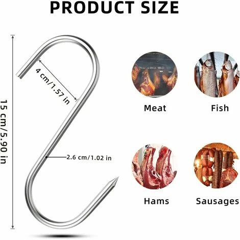 les crochets. - Crochet de cuisine multifonction : crochet en forme de S, notre crochet à viande a une pointe pointue, adapté pour le poisson, la viande, le barbecue, le fumoir, et peut également être utilisé comme crochet à viande, crochet à fumer, crochet à viande,