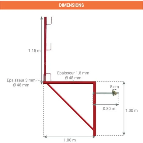 – Console d’échafaudage suspendu livrée avec poteau de 1.15m