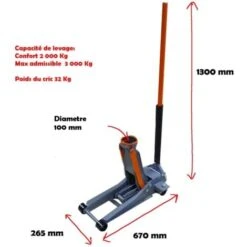 Cric rouleur professionnel 3 T extra plat levage de 75 Ă 500 mm