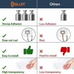 MATÉRIAUX PREMIUM – Crochets adhésifs en acier inoxydable solide et structure en PVC de bonne qualité et longue durée de vie. Propre et bien rangé, le temps ne peut pas changer sa couleur, plus longtemps aussi durable. Non toxique, recyclable, écologique et transparent