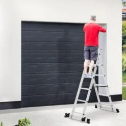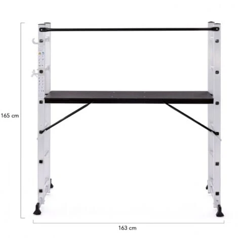 Réalisez tous vos travaux à l’aide de cet échafaudage en aluminium multifonctions. Prenez de la hauteur avec la fonction échelle double de 2,73 mètres puis passez facilement en mode escabeau en toute sécurité grâce à ses 4 pieds antidérapants. Utilisable à l’intérieur comme à l’extérieur, l’échafaudage multifonctions sera facile à déplacer grâce à ses deux roues et saura se positionner comme vous le souhaitez à moindre effort.Pouvant supporter une charge allant jusqu’à 150 kg, vous pourrez garder vos outils à portée de main tout en restant en sécurité sur la large plateforme de 147 x 40 CM qu’offre l’échafaudage. Robuste et stable grâce à sa structure en aluminium, il vous suivra dans vos activités de bricolage ou de jardinage.Sécurité, mobilité et praticité à petit prix ! L’échafaudage aluminium multifonctions sera facilement transportable grâce à ses deux roues et deviendra vite incontournable dans votre quotidien.Dimensions de l’échafaudage aluminium multifonctions – Dimensions de l’échafaudage : Longueur 163 CM x largeur 72 CM x Hauteur 165 CM- Dimensions de la plateforme : 147 x 40 CM – Dimensions de l’escabeau : Longueur 119,5 x largeur 72 x Hauteur 155 CM- Dimensions de l’échelle double : largeur 72 x Hauteur 273 CM – Nombre de marches : 6 marches par module – Largeur des marches : 28,5 x 34 CM- Hauteur des marches : 27 CM- Largeur du cadre : 6 CM – Charge maximum : 150 KG- Deux roues – Poids net : 16 KG- Matière : Aluminium – Norme : EN 131 – 1 / -2 / -3- À monter soi-mêmeRetrouvez également l’échafaudage roulant et pliable sur notre boutique en ligne ID Market !