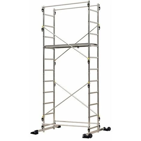 – Pour le travail en intĂ©rieur il suffit de monter uniquement la base de l’Ă©chafaudage sans les 2 Ă©chelles supĂ©rieurs pour obtenir un Ă©chafaudage d’une hauteur de 1.59 m.