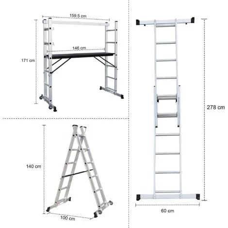 Multifonctionnel: peut être utilisée comme échelle, escabeau et échafaudage