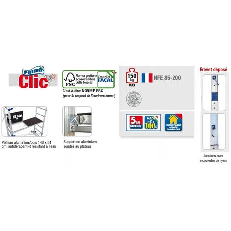 - Charge maxi sur l’Ă©chafaudage : 150 kg