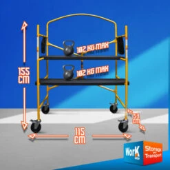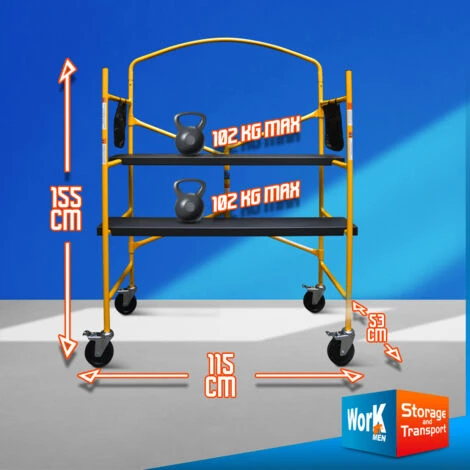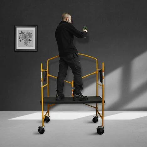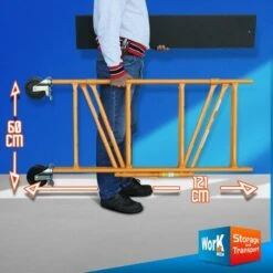 TrĂšs pratique, les planches amovibles se nettoient facilement de tous les matĂ©riaux qui pourraient tomber au cours de vos travaux (peinture, colle, plĂątre…). De plus, grĂące Ă ses 4 roues avec frein, il se dĂ©place facilement.