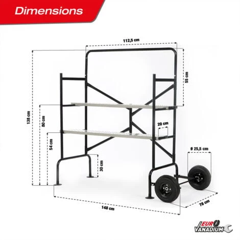 - Cet échafaudage mobile peut supporter un poids important. Vous pouvez monter dessus avec votre matériel sans risque.