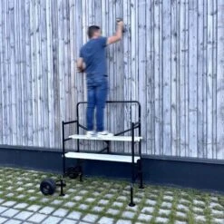 Cet Ă©chafaudage vous permettra de travailler Ă plus de 2.5m de haut en intĂ©rieur comme en extĂ©rieur. Tailler vos haies, nettoyer vos gouttiĂšres, peindre les murs, rĂ©alisez tous vos travaux en hauteur facilement. Il est dotĂ© de 2 niveaux qui sont modulables et amovibles, ils se positionnent en escalier pour faciliter la montĂ©e et la descente. La structure en acier peut supporter jusqu’Ă 150kg, gardez vos outils Ă portĂ©e de main et en toute sĂ©curitĂ©. Stable et sĂ»r, cet Ă©chafaudage a 4 pieds antidĂ©rapants et un garde-corps qui vous protĂšge des chutes.