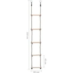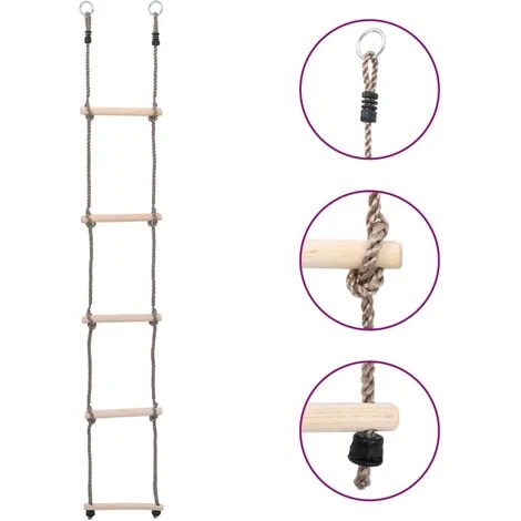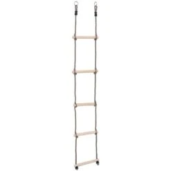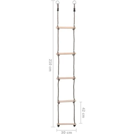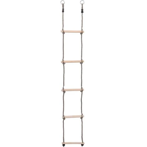 Cette échelle en bois à 5 échelons offre un grand plaisir à vos enfants ! L’échelle de corde, avec des échelons en bois de pin massif et une corde en PE, est solide pour que votre petit s’amuse à monter et descendre. L’échelle est résistante aux intempéries. Elle convient donc au jardin et à l’arrière-cour. De plus, l’échelle d’escalade a deux cordes qui se terminent par des anneaux de suspension pour la fixation à une balançoire ou une tour de jeu. L’échelle convient aux enfants de plus de 3 ans. Veuillez vous assurer que l’échelle est utilisée sous la surveillance directe d’un adulte uniquement.