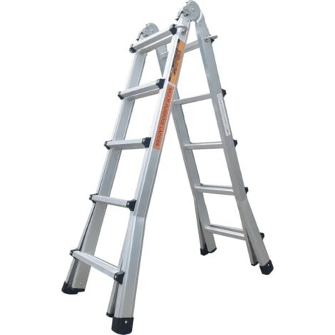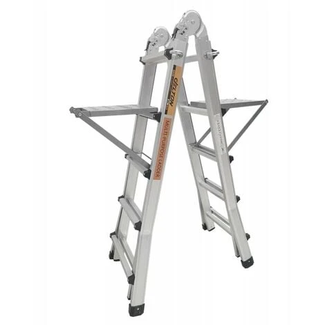 Escabeau 4×5 marches de 4,96m + 2 tablettes pour outils uniquement.