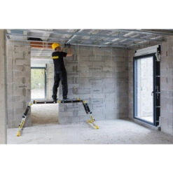OPTI+ PRO est une échelle articulée télescopique de la gamme Master. Réglable en hauteur, barreaux par barreaux, en tirant sur les poignées, elle permet à l’utilisateur professionnel de travailler à des hauteurs différentes.Utilisable en 5 positions différentes : position échelle simple, écarteur de mur, autostable, plate-forme et en dénivelés, elle est indispensable sur vos chantiers ! Equipée de barreaux antidérapants 30 x 30 mm sur la partie articulée et de 25 x 30 mm sur la partie télescopique et d’un intervalle de 280 mm entre les barreaux. Les montants en aluminium anodisé (sur la partie articulée de l’échelle) permettent à l’utilisateur de garder les mains propres.L’échelle est dotée de 2 plateaux aluminium antidérapants d’une surface totale de 0.30 x 1.40 m. Les deux stabilisateurs de l’échelle ont deux patins antidérapants bi-matières.Encombrement plié ultra-réduit (0.94 x 0.81 x 0. : les planchers se rangent très simplement au milieu du produit plié.