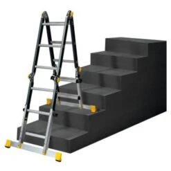 Description Structure en aluminium anodisé.Échelle multipositions pliante et télescopique:Plate-forme, autostable, dénivelés, écarteur de mur, échelle simple.2 plateaux aluminium antidérapants.Barreaux antidérapants.Déverrouillage par simple pression.Hauteur de plate-forme : de 0,62 à 0,90 m.Longueur dépliée : de 2,86 à 3,41 m.Dimensions repliée : 0,94 x 0,81 x 0,37 m.