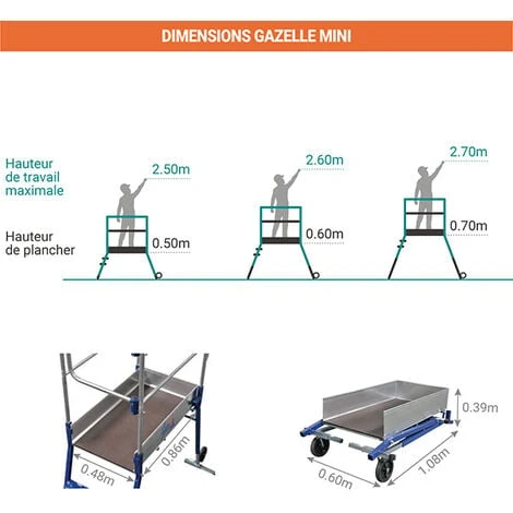 – La hauteur de travail confortable correspond à la hauteur de plateforme + 1.00m