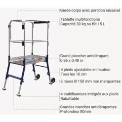 – Tablette multifonctions, capacité 30 kg ou fût de 15 L