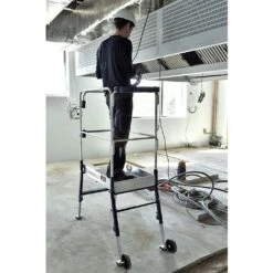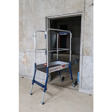 – Installation de l’escabeau gazelle en dénivelés intégrée: réglage indépendant des 4 pieds.