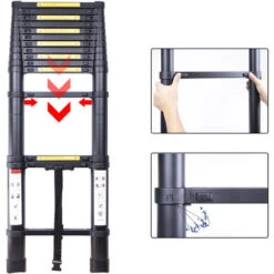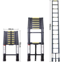 Échelle faite d’aluminium de haute qualité, antirouille et durable. Il peut atteindre une capacité de charge maximale de 150 kg.