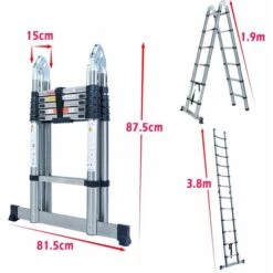✅ Échelle pliante pliable en A 1,9 m + 1,9 m et échelle télescopique 3,8 m.