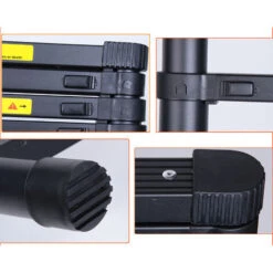 Il existe des réglages de sécurité des doigts entre les barreaux pour empêcher les doigts de se coincer lors des mouvements d’entrée et de sortie. Une marche antidérapante caoutchoutée et une sangle absorbant les chocs entre les barreaux forment une base solide, permettant une utilisation en toute sécurité lorsque l’échelle pliante est complètement déployée.
