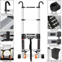 »Facile à transporter, échelle télescopique portable, il est également facile pour une seule personne de transporter l’échelle à l’extérieur.