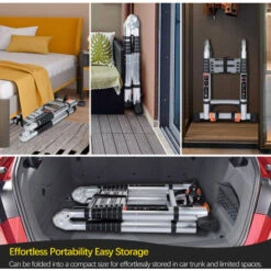 Les échelons de l’échelle polyvalente en aluminium peuvent être rapprochés très étroitement, faciles à ranger et faciles à transporter d’un emploi à l’autre.
