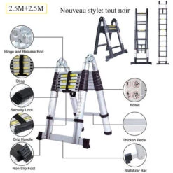 Les échelons de l’échelle polyvalente en aluminium peuvent être rapprochés très étroitement, faciles à ranger et faciles à transporter d’un emploi à l’autre.