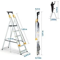Léger et pliable : Conçu en aluminium, l’escabeau est léger, facile à plier et à ranger.