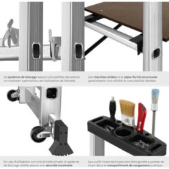 - Échelle 3 en 1 (Échelle simple, Échelle double, Échelle télescopique / extensible).