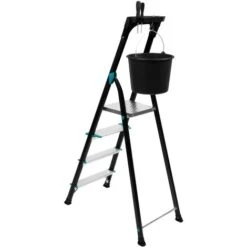 - Le plateau Ă outils situĂ© en haut de l’escalier permet de ranger le petit matĂ©riel, ce qui vous Ă©vite de devoir constamment descendre l’escalier. Le plateau Ă outils dispose Ă©galement d’un crochet auquel vous pouvez accrocher un seau. Attention, la boĂ®te Ă outils/crochet peut supporter un maximum de 10 kg.