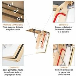 – Echelle escamotable adaptable en fonction de la hauteur de votre piĂšce (recoupable).