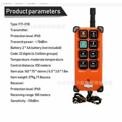 Caractéristiques : L’émetteur dispose de 8 touches de fonction (6 touches à vitesse unique + 1 touche de démarrage + 1 touche d’arrêt). Le nombre maximum de points de contrôle de l’émetteur peut être de 8. L’émetteur dispose d’un interrupteur à clé de sécurité pour empêcher toute utilisation non autorisée. L’émetteur peut être connecté à l’ordinateur via un câble de données pour définir le mode fonctionnel du bouton. L’émetteur dispose d’un dispositif d’avertissement de batterie faible, qui empêche l’arrêt automatique du circuit en raison d’une tension insuffisante. La coque en fibre de nylon est confortable pour le toucher, robuste, résistant aux chutes, imperméable, anti-corrosion et isolé. Les cartes émettrices et réceptrices avec oscillateurs à cristal offrent des performances stables.