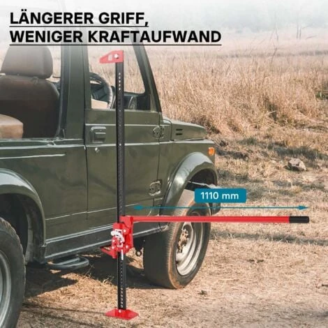 La longueur de 150 cm du cric à multi-usage est assez pratique, puisque vous pouvez le ranger dans chaque véhicule sans que cela encombre le coffre ou prenne trop de place. Le poids propre du cric est de 15 kg.