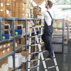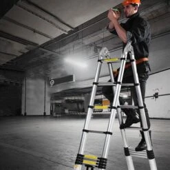Échelle télescopique professionnelle en aluminium – durable, elle est pliable et facile à ranger.