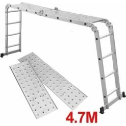 L’échelle en aluminium multifonctionnelle 6 en 1 mesure 470cm de long, et ses barreaux sont antidérapants pour garantir votre sécurité. Les extrémités de l’échelle ont des embouts en caoutchouc qui la rendent sûre et pratique.