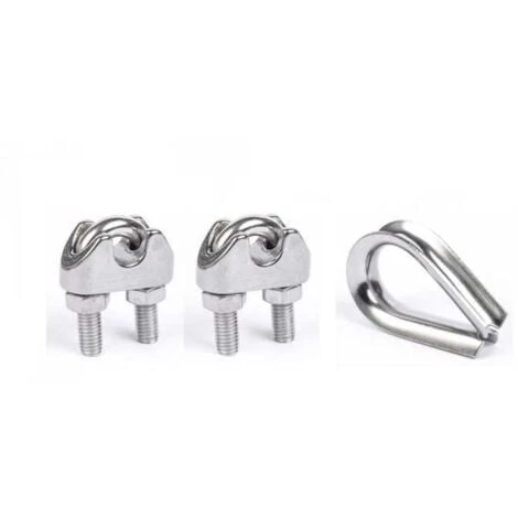 Kit de deux serres-câbles étriers et un cosse coeur pour câble de ø4mm inox A4 AISI 316