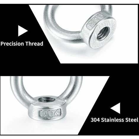 - 【Matériau de haute qualité】 Les écrou à anneau sont fabriqués en acier inoxydable 304 de haute qualité, très solide et durable. La bague de levage de l’acier a une bonne capacité portante et fonctionne bien dans les environnements humides.