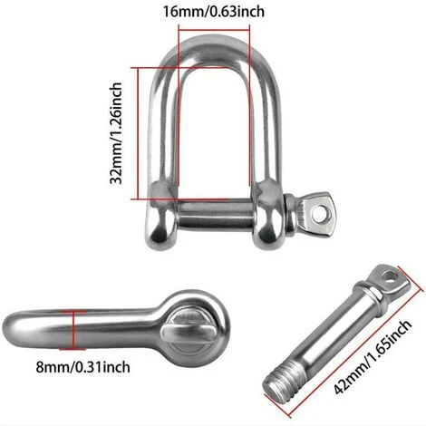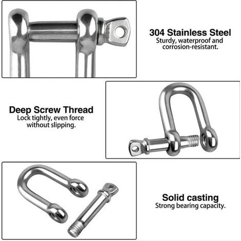 Utilisation large: Cette serrure à manille en acier inoxydable 304 à anneau en D est largement utilisée pour suspendre des sacs de sable, l’alpinisme, la randonnée, les chaînes d’ancre, les accessoires de voile, l’armoire. Convient pour connecter des vis à crochet pour panier de fleurs, des chaînes à vis lourdes, des crochets et d’autres accessoires.