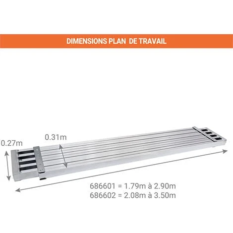 – Plateforme d’une longueur de 2.90 ou 3.50m une fois dépliée.