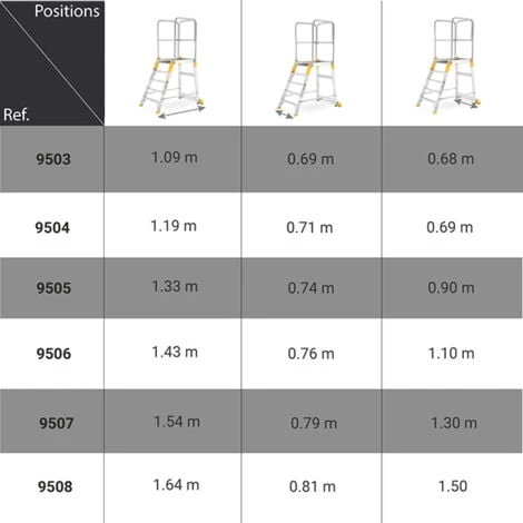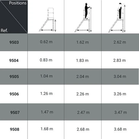 – Nombre de marches plateforme comprise.