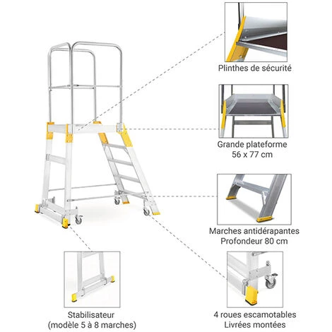 – Stabilisateur sur les modèles de 5 à 7 marches.