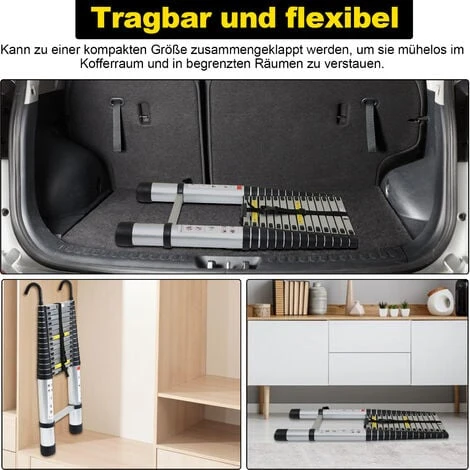 PORTABLE ET FLEXIBLE : L’Ă©chelle tĂ©lescopique est fabriquĂ©e d’un alliage d’aluminium lĂ©ger mais de haute qualitĂ© et ne pĂšse que 6,3 kg. Une fois pliĂ©e, l’Ă©chelle Ă coulisse ne mesure que 0,74 m de haut, rĂ©glable en hauteur jusqu’Ă 2,6 m. Elle peut ĂȘtre rangĂ©e au sous-sol, dans le grenier ou dans le dĂ©barras pour gagner de la place et ĂȘtre facile Ă transporter.