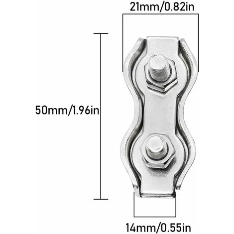 Taille du produit: longueur 5 cm / 1,97 pouce, largeur 2 cm / 0,79 pouce, hauteur 1,73 cm / 0,68 pouce. Convient pour un câble en acier de 4 mm.